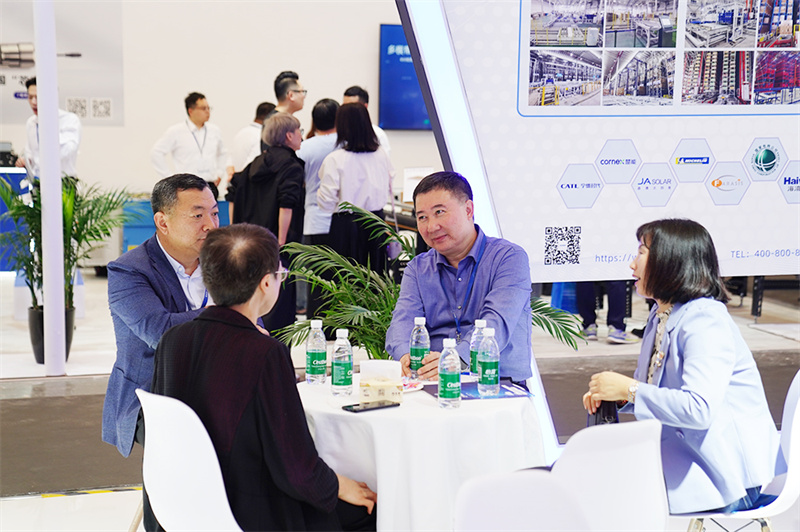 ▲ 合作伙伴、友商代表蒞臨新松展位洽談交流