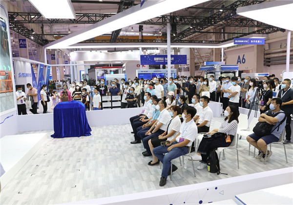 展會現場,《機器人技術與應用》雜志主編王偉、新松公司技術總監張雷共同為“星衛來”工業清潔機器人新品揭幕,現場來賓、媒體代表及廣大參展觀眾共同見證了這一激動人心的時刻。