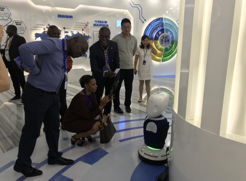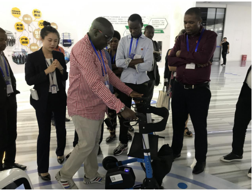 在機器人未來體驗館,研修班學員們認真聆聽講解,深入了解機器人在政務金融、展廳展館、醫療教育、新零售等多個行業領域的創新發展。其中,場館里展示的養老助力車引起來賓的注意,它可以幫助腿腳不便的老人行走,上坡時提供助力,下坡提供阻力,“真是太智能了!”學員紛紛上前體驗,大加贊賞。